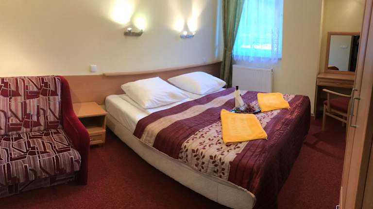 Das Frühstück wird täglich im hoteleigenen Restaurant serviert, das auf polnische Küche spezialisiert ist und auch Kindergerichte anbietet. Zudem gibt es eine Grillhütte, die gegrillte Speisen anbietet. Es sind verschiedene zusätzliche Verpflegungsangebote, wie Snackbar und Lunchpakete, verfügbar.