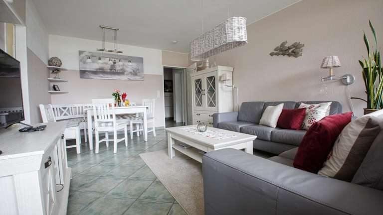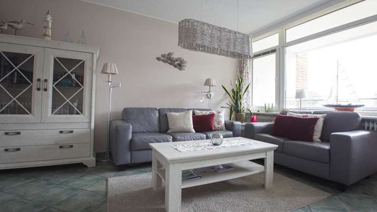 Oland Whg 1 Wattläufer bietet Übernachtungsmöglichkeiten mit Zugang zu einer Sauna und einem Innenpool. Die Unterkunft umfasst einen Balkon sowie kostenlosen Privatparkplatz und WLAN.