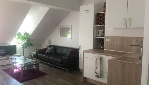 Die Ferienwohnung verfügt über ein Schlafzimmer, ein Wohnzimmer, einen Flachbild-TV sowie eine gut ausgestattete Küche mit Kühlschrank und Mikrowelle. Des Weiteren sind ein Badezimmer mit Dusche sowie Handtücher und Bettwäsche vorhanden.