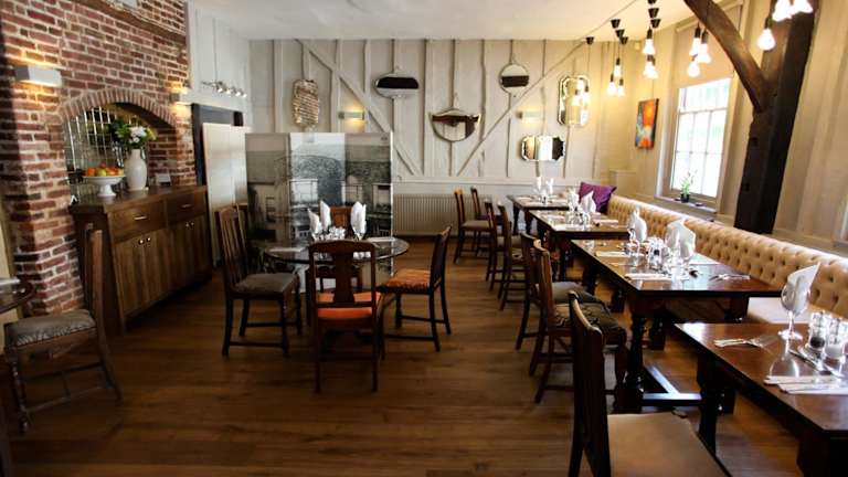 Das Restaurant im Old Bull Inn serviert traditionelle britische Küche, die hausgemacht ist. Besonders bekannt sind die Sonntagsgerichte. Weitere Verpflegungsmöglichkeiten umfassen Getränke und Snacks in der hauseigenen Bar.