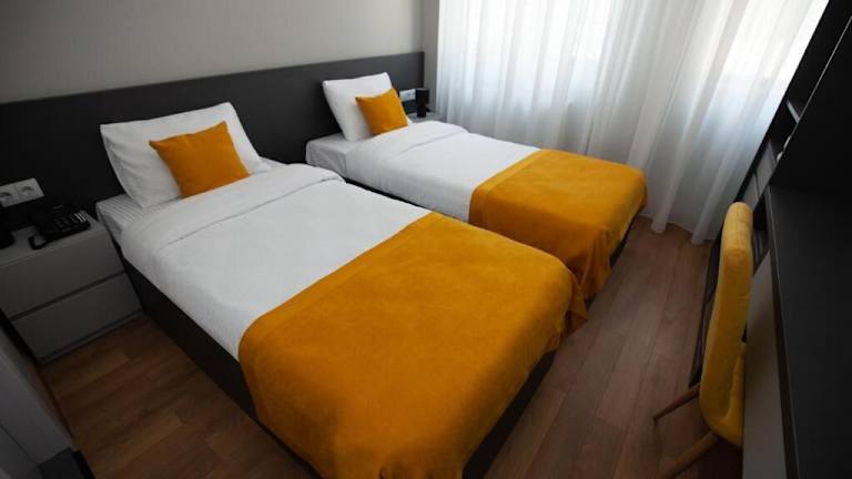 Die Zimmer sind ausgestattet mit Klimaanlage, einem Flachbild-TV mit Satellitenkanälen, einem Kühlschrank, einem Wasserkocher, einem Bidet, kostenlosen Pflegeprodukten und einem Schreibtisch. Jedes Zimmer verfügt über ein eigenes Badezimmer mit Dusche und Haartrockner. In einigen Zimmern ist zudem ein Balkon vorhanden. Bettwäsche und Handtücher sind ebenfalls in jedem Zimmer vorhanden.