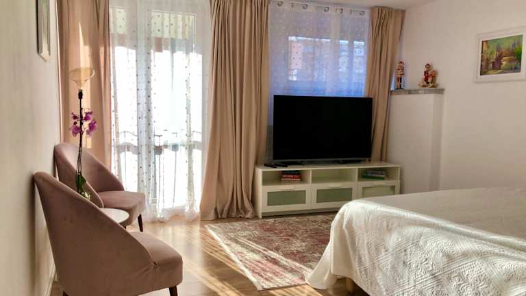 Die Ferienwohnung verfügt über 1 Schlafzimmer und 1 Badezimmer. Zur Ausstattung gehören Bettwäsche, Handtücher, ein Flachbild-TV mit Kabelkanälen, eine voll ausgestattete Küche sowie ein Balkon mit Stadtblick.