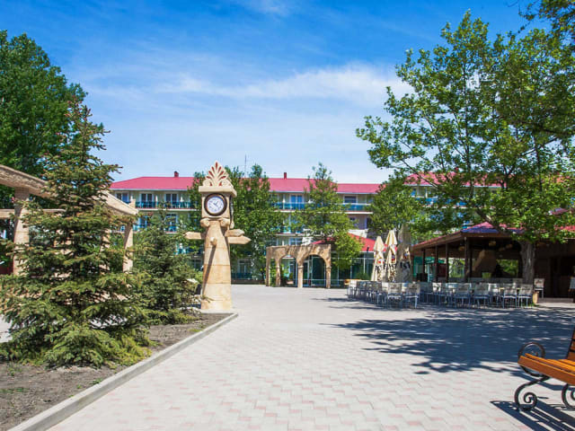 Das Olimp Resort Hotel All Inclusive in Anapa ist der perfekte Ort für einen entspannten Urlaub. Genießen Sie den Luxus der All-inclusive-Verpflegung und lassen Sie sich im Wellnessbereich mit Massagen verwöhnen. Die Außenpools und der Privatstrand bieten zusätzliche Erholungsmöglichkeiten. Das Hotel verfügt auch über einen Concierge-Service und bietet kostenfreies WLAN.