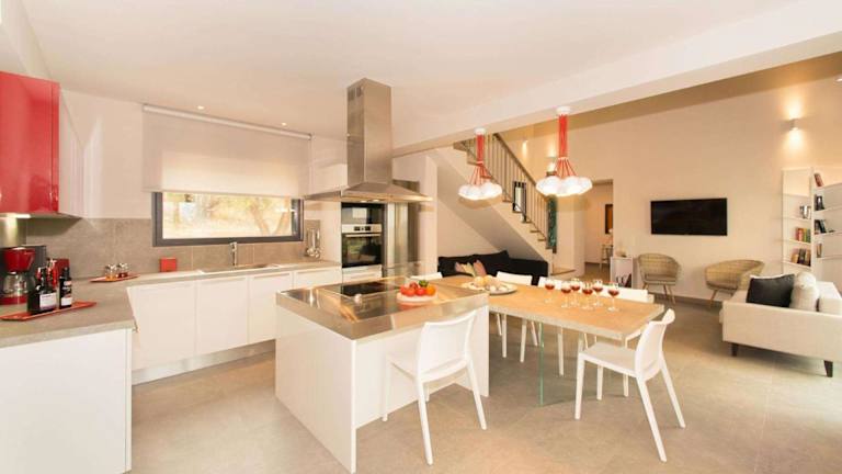 Die Villa ist klimatisiert und umfasst 4 separate Schlafzimmer, eine voll ausgestattete Küche mit Kühlschrank und Geschirrspüler sowie 4 Badezimmer. Handtücher und Bettwäsche werden bereitgestellt.