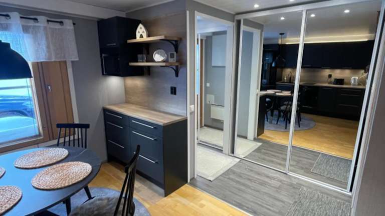 Die Ferienwohnung besteht aus einem Schlafzimmer und einem Wohnzimmer. Zudem ist eine vollständig ausgestattete Küche vorhanden, die unter anderem einen Kühlschrank und eine Kaffeemaschine umfasst. Ein Badezimmer mit Bidet und Dusche ist ebenfalls vorhanden. Auf Anfrage können Handtücher und Bettwäsche gegen Aufpreis bereitgestellt werden.