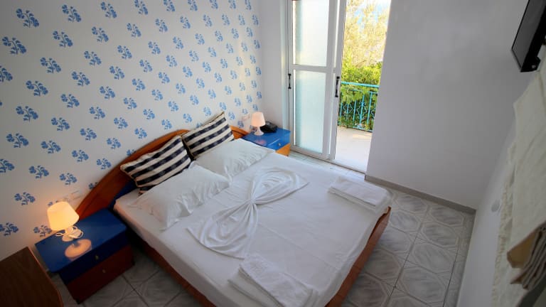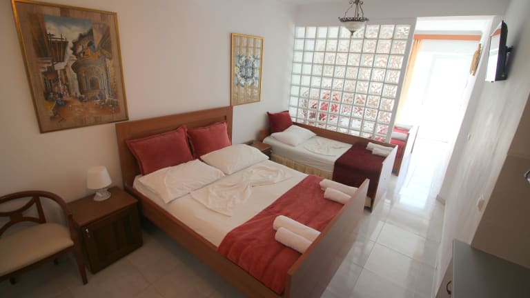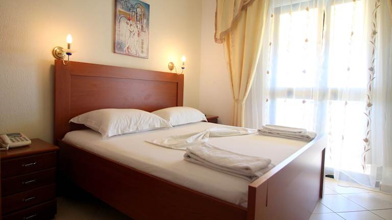 Die Zimmer im Olympia Hotel sind komfortabel und bieten einen Balkon oder eine Terrasse mit Meerblick. Jedes Zimmer ist klimatisiert und verfügt über ein eigenes Bad mit Dusche, kostenfreien Pflegeprodukten und Handtüchern. Einige Zimmer verfügen auch über eine Küche und eine Minibar.