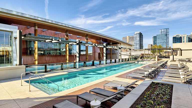 Gäste des Omni Nashville Hotels können den Pool auf dem Dach und das Fitnesscenter nutzen. Im Wellnessbereich werden Massagen, Gesichts- und Körperanwendungen angeboten.