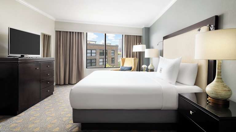 Die Zimmer im Omni Riverfront Hotel sind prächtig gestaltet und mit Holzmöbeln eingerichtet. Jedes Zimmer verfügt über Kabel-TV mit Pay-TV und Videospielen sowie Tee- und Kaffeezubehör. Das Hotel bietet auch Zimmer mit behindertengerechter Ausstattung.