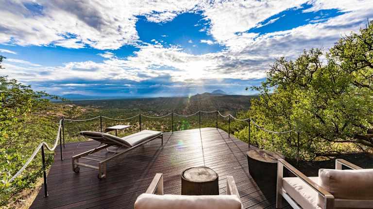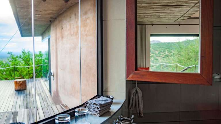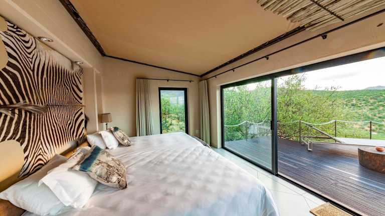 Die Zimmer im Hotel Omurenga bieten Luxus und Komfort. Jedes Zimmer verfügt über eine eigene Terrasse, von der aus Sie den Panoramablick auf das Erongo-Gebirge genießen können. Die Zimmer sind klimatisiert und verfügen über ein eigenes Bad und einen Safe.