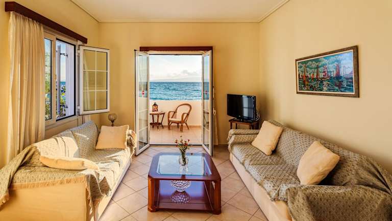 Die klimatisierten Apartments im On the Beach - Akroyali Family Lodging verfügen über einen Balkon und einen Wasserkocher. Sie bestehen aus 2 Schlafzimmern, einem gemütlichen Wohnzimmer und einer voll ausgestatteten Küche mit Kühlschrank und Kaffeemaschine. Das Badezimmer ist mit einer Dusche und einem Haartrockner ausgestattet. Handtücher und Bettwäsche werden gestellt.