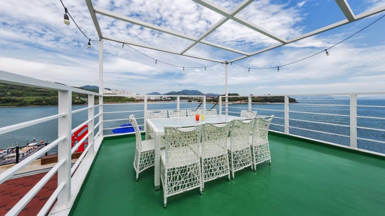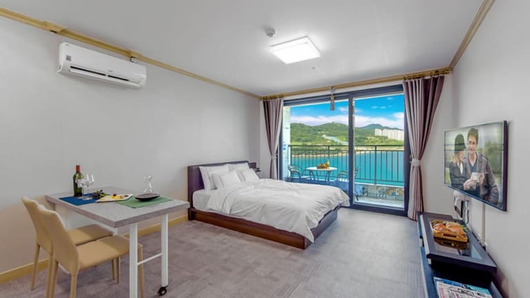 Das Onda D'oro Hostel in Yeosu ist eine ideale Unterkunft für Reisende, die den Meerblick und die Nähe zur Yeosu Expo genießen möchten. Mit kostenfreiem WLAN und Privatparkplätzen bietet das Hostel einen angenehmen Aufenthalt. Die Zimmer sind gut ausgestattet und verfügen über einen Balkon mit Sitzbereich im Freien, einen Flachbild-TV, einen Essbereich und eine voll ausgestattete Küche. Das eigene Bad bietet kostenfreie Pflegeprodukte, Hausschuhe und ein WC mit elektronischem Bidet. Die Unterkunft bietet auch eine kostenlose Gepäckaufbewahrung. Der Busbahnhof Yeosu ist nur 22 Fahrminuten entfernt.