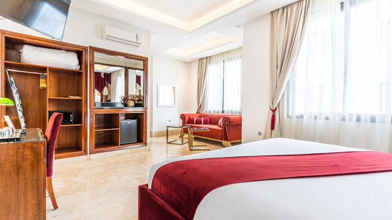 Die Zimmer im One Hotel Casablanca sind klimatisiert und bieten einen komfortablen Rückzugsort für die Gäste. Jedes Zimmer ist mit modernen Annehmlichkeiten wie einem Schreibtisch, einer Kaffeemaschine, einem Kühlschrank, einer Minibar, einem Safe, einem Flachbild-TV, einer Terrasse und einem eigenen Badezimmer mit Bidet ausgestattet. Die Zimmer sind geschmackvoll eingerichtet und bieten einen angenehmen Aufenthalt.