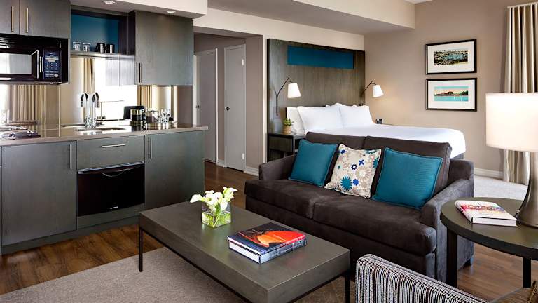 Das One King West Hotel and Residence in Toronto bietet seinen Gästen eine einzigartige Kombination aus historischem Charme und modernem Komfort. Mit seiner zentralen Lage ist es der ideale Ausgangspunkt, um die Stadt zu erkunden. Die Zimmer sind geräumig und gut ausgestattet, mit separaten Schlaf-, Ess- und Arbeitsbereichen. Das Hotel verfügt auch über ein Fitnesscenter, ein Restaurant und eine Bar.