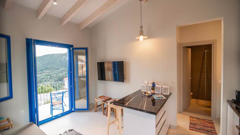 Klimatisierte Wohneinheiten mit Bergblick werden angeboten. Diese sind ausgestattet mit einem Sitzbereich, einem Flachbild-TV, einer voll ausgestatteten Küche mit Kühlschrank, Ofen und Herdplatte sowie einem eigenen Badezimmer mit Dusche. Eine Kaffeemaschine ist ebenfalls vorhanden.
