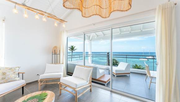 Only4view - Rooftop & spa Sainte-Anne bietet Übernachtungsmöglichkeiten in einer modernen Ferienwohnung, die klimatisiert ist und über eine Terrasse sowie kostenloses WLAN verfügt. Die Unterkunft ist direkt am Strand gelegen und stellt einen Geldautomaten sowie einen Conciergeservice zur Verfügung.