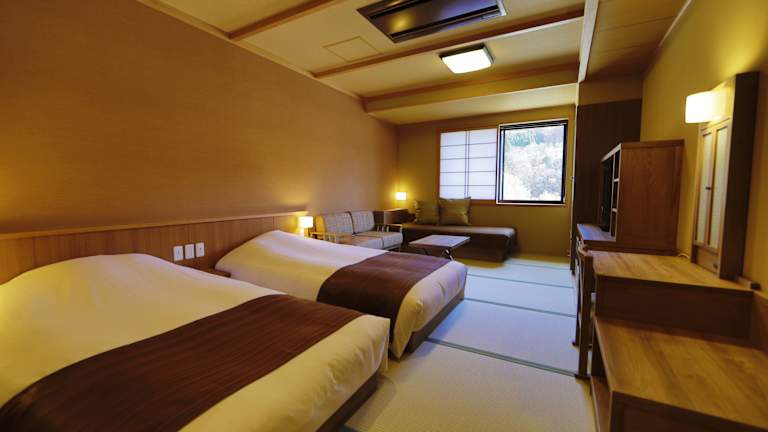 Im Onyado Yuinosho erwarten Sie komfortable und klimatisierte Zimmer, die mit modernen Annehmlichkeiten wie einem Schreibtisch, einem Wasserkocher, einem Kühlschrank, einem Safe und einem Flachbild-TV ausgestattet sind. Jedes Zimmer verfügt über ein eigenes Bad mit einem Bidet und wird täglich mit frischer Bettwäsche und Handtüchern versorgt.