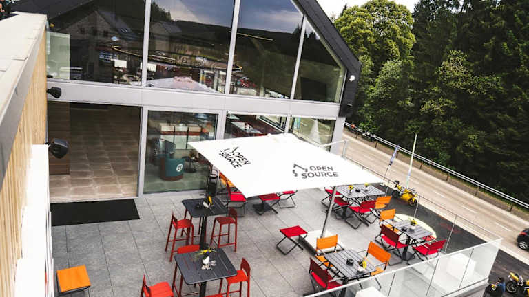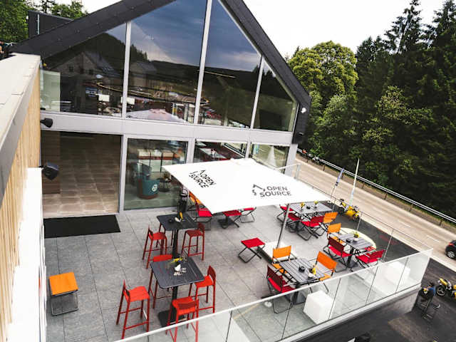 Open Source à l'entrée du Circuit! bietet Übernachtungsmöglichkeiten mit Parkettböden, einer Terrasse, einem Restaurant und einer Bar.
