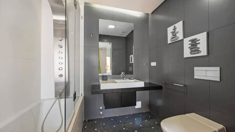 Das Ferienhaus verfügt über 3 Schlafzimmer sowie eine voll ausgestattete Küche mit Kühlschrank und Geschirrspüler. Es sind 3 Badezimmer vorhanden, die mit Duschen, Haartrocknern und Waschmaschinen ausgestattet sind. Handtücher und Bettwäsche werden bereitgestellt.