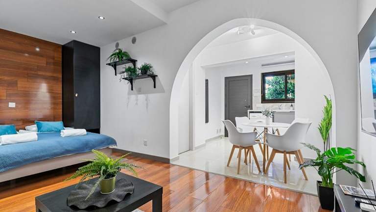 Die Unterkunft befindet sich in Paphos, nur 200 Meter vom Strand am Leuchtturm entfernt. In der Nähe befinden sich das Einkaufszentrum Kings Avenue Mall (600 Meter) und die Königsgräber von Nea Paphos (1,6 Kilometer). Der nächste Flughafen ist der Flughafen Paphos, der sich in 8 Kilometer Entfernung befindet.