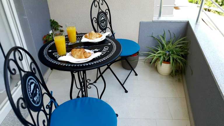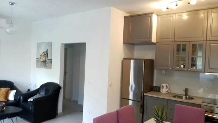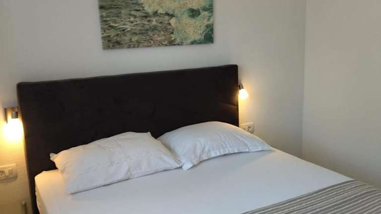 Die Ferienwohnung umfasst zwei Schlafzimmer und ein Badezimmer. Zur Ausstattung gehören Bettwäsche, Handtücher, ein Flachbild-TV, ein Essbereich sowie eine voll ausgestattete Küche. Der Balkon ermöglicht einen schönen Ausblick auf das Meer.