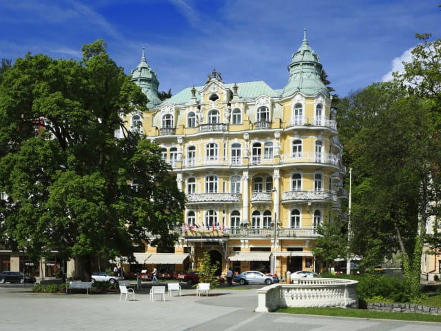 Das OREA Spa Hotel Bohemia Mariánské Lázně bietet seinen Gästen die perfekte Kombination aus historischem Charme und modernen Wellnesseinrichtungen. Das Hotel befindet sich im Zentrum von Marienbad und ist nur einen kurzen Spaziergang von der berühmten Kolonnade und den Heilquellen entfernt. Genießen Sie erholsame Massagen und kurative Anwendungen oder entspannen Sie in der Sauna. Das hoteleigene Restaurant verwöhnt Sie mit einer Vielzahl von köstlichen tschechischen und internationalen Gerichten.