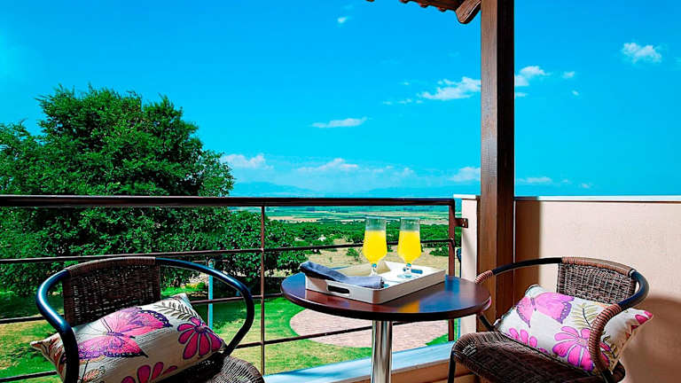 Die Zimmer im Orfeas Land sind elegant und stilvoll eingerichtet. Jedes Zimmer verfügt über einen Balkon, von dem aus Sie einen wunderschönen Blick auf den Garten und die Berge genießen können. Die Zimmer sind in warmen Erdtönen gehalten und mit modernen Annehmlichkeiten wie einem Flachbild-TV und einem gemütlichen Sitzbereich ausgestattet. Eine Minibar und ein eigenes Bad mit Haartrockner und Pflegeprodukten sind ebenfalls vorhanden.