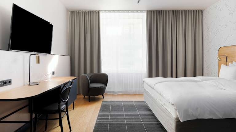 Die Zimmer im Solo Sokos Hotel Helsinki sind geräumig und komfortabel. Sie verfügen über Annehmlichkeiten wie kostenfreies WLAN, Flachbild-TVs und Holzböden. Einige Zimmer bieten sogar eine eigene Sauna, um sich nach einem langen Tag zu entspannen.