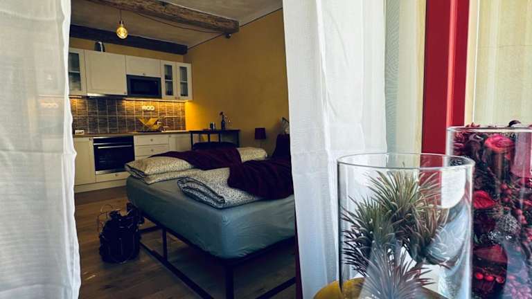Die Ferienwohnung verfügt über 1 Schlafzimmer, eine Küche mit Kühlschrank und Ofen, einen Flachbild-TV, einen Sitzbereich sowie ein Badezimmer mit Dusche. Handtücher und Bettwäsche werden bereitgestellt.