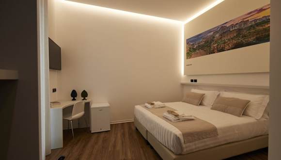 Die klimatisierten Zimmer im Orizzonte MHotel sind modern und komfortabel eingerichtet. Jedes Zimmer verfügt über einen Flachbild-TV, einen Schreibtisch und ein eigenes Bad mit einem Bidet. Die Zimmer bieten den Gästen einen gemütlichen Rückzugsort nach einem langen Tag voller Erkundungen.