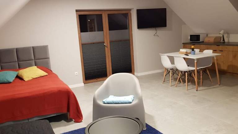 Das klimatisierte Apartment im Osada Ostrowsko besteht aus einem komfortablen Schlafzimmer und einem gemütlichen Wohnzimmer. Die voll ausgestattete Küchenzeile bietet alles, was man für die Zubereitung von Mahlzeiten benötigt, inklusive Kühlschrank und Wasserkocher. Das Apartment verfügt über ein Badezimmer mit Dusche und Haartrockner. Handtücher und Bettwäsche werden gestellt, um den Gästen einen angenehmen Aufenthalt zu ermöglichen.