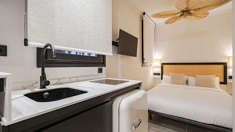Die Küche der Studios beinhaltet einen Kühlschrank, eine Mikrowelle und eine Herdplatte. Handtücher und Bettwäsche können gegen Aufpreis bereitgestellt werden.