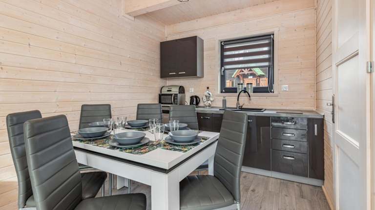 Die Zimmer im Ośrodek Wypoczynkowy DAKAR verfügen über einen Sitzbereich und einen Satelliten-Flachbild-TV. Eine voll ausgestattete Küche mit Kühlschrank, Mikrowelle, Herdplatte, Toaster, Kaffeemaschine und Wasserkocher ist ebenfalls vorhanden. Jedes Zimmer hat ein eigenes Badezimmer mit Dusche und Haartrockner. Zudem gibt es eine Terrasse mit Gartenblick.