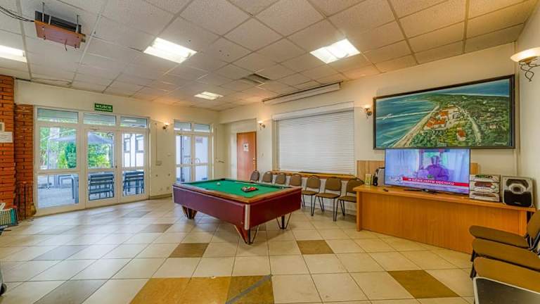 Das Ośrodek Wypoczynkowy Neptun bietet einen Kinderspielplatz und einen Garten, in dem Sie sich entspannen und die Natur genießen können. Die Nähe zum Strand ermöglicht Ihnen auch verschiedene Wassersportaktivitäten wie Schwimmen, Surfen oder Stand-Up-Paddeln. Die Gegend eignet sich auch perfekt für Fahrradtouren entlang der Küste oder Spaziergänge am Strand.