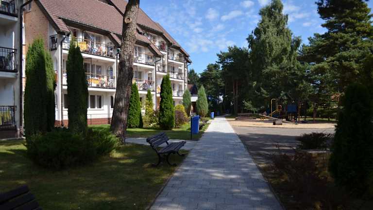Das Ośrodek Wypoczynku i Rekreacji Venus liegt mitten im Grünen, 100 m vom Sandstrand entfernt. Die nächste Stadt, Mrzeżyno, ist 1 km entfernt. Der örtliche Palast in Trzebiatów ist 10 km weit entfernt, während die Stadt Kołobrzeg und der Bahnhof Kolberg in einer Entfernung von 20 km liegen.