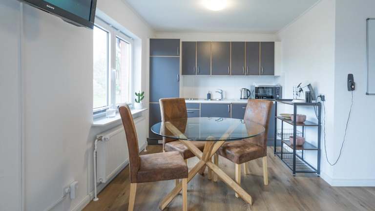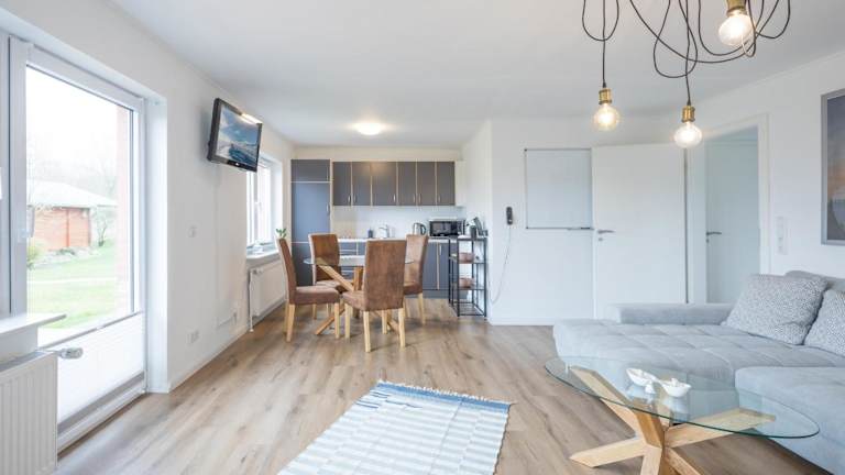 Das Apartment im Ostenfelder Stuuv befindet sich im Erdgeschoss und bietet den Gästen einen komfortablen Aufenthalt. Das geräumige Schlafzimmer lädt zum Entspannen ein und der TV sorgt für Unterhaltung. Die voll ausgestattete Küche mit Kühlschrank und Geschirrspüler ermöglicht es den Gästen, ihre eigenen Mahlzeiten zuzubereiten. Das kostenfreie WLAN sorgt dafür, dass die Gäste jederzeit mit der Außenwelt verbunden bleiben können.