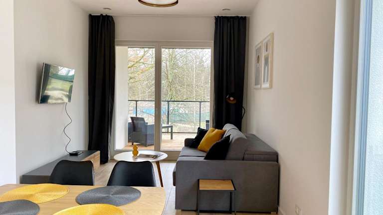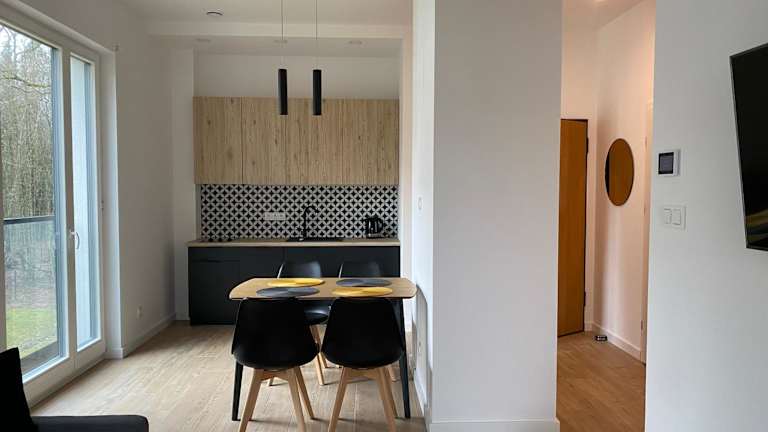 Das Apartment im Ostoja Białowieska verfügt über ein gemütliches Schlafzimmer, eine gut ausgestattete Küche mit Kühlschrank und Geschirrspüler, einen komfortablen Sitzbereich und ein modernes Badezimmer mit Dusche. Handtücher und Bettwäsche werden Ihnen gestellt, um Ihnen einen angenehmen Aufenthalt zu ermöglichen.