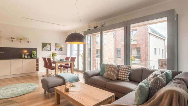 Ostsee - Appartement Nr 94 "Luv und Lee" im Strand Resort bietet einen schönen Meerblick und einen Balkon. Die Unterkunft ist Teil eines Strand Resorts und verfügt über zahlreiche Annehmlichkeiten wie kostenloses WLAN und einen Privatparkplatz.