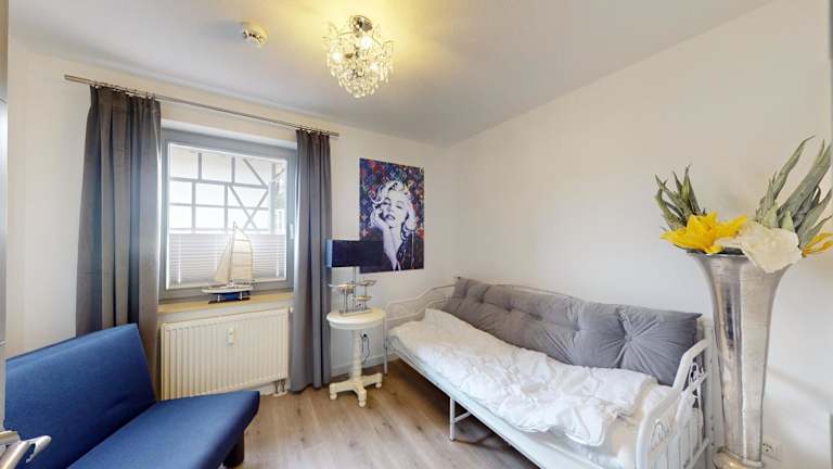 Die Ferienwohnung verfügt über zwei Schlafzimmer, ein Wohnzimmer, ein Badezimmer mit Dusche sowie eine Terrasse mit Meerblick. Zur Ausstattung gehören ein Flachbild-TV, Handtücher, Bettwäsche und eine Heizung.
