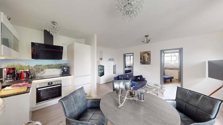 Die Ferienwohnung beinhaltet eine gut ausgestattete Küche, die mit einem Kühlschrank und einem Geschirrspüler ausgestattet ist. Es stehen Grillmöglichkeiten für die Zubereitung von Speisen im Freien zur Verfügung.