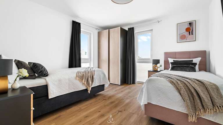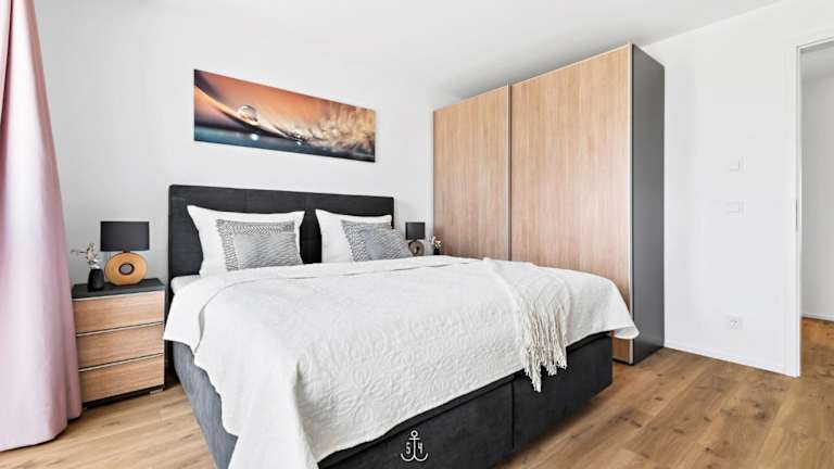 Die Ferienwohnung verfügt über 3 Schlafzimmer, einen TV und eine voll ausgestattete Küche mit Kühlschrank, Geschirrspüler, Waschmaschine, Ofen und Mikrowelle.