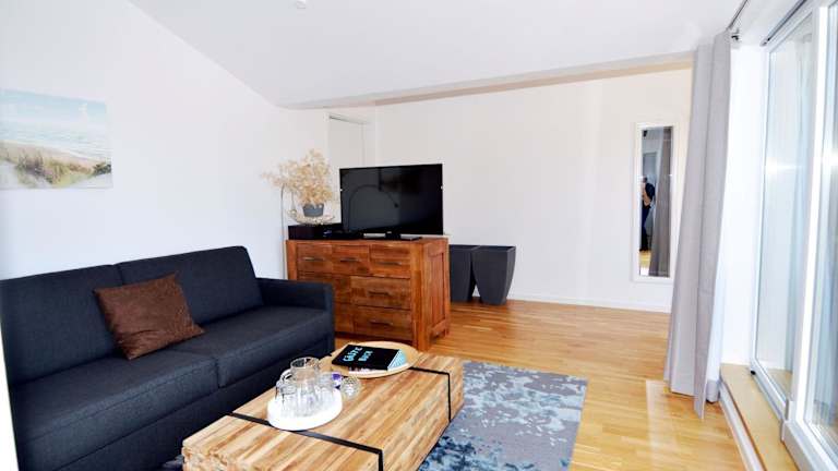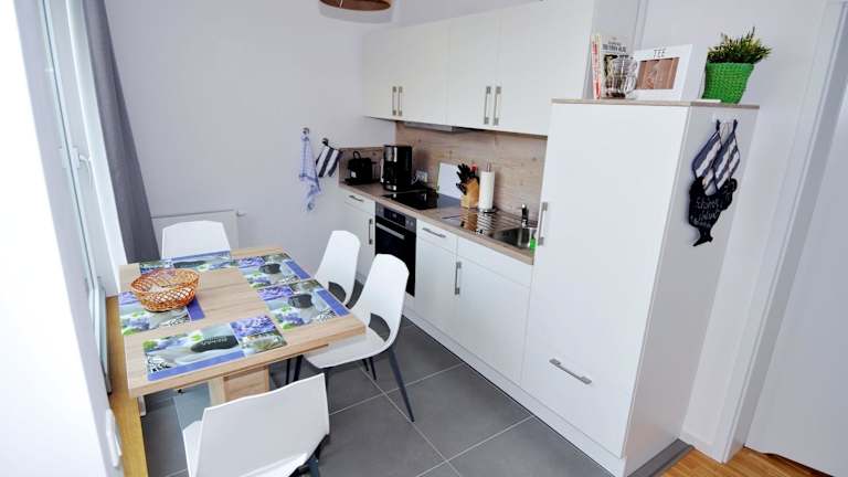 Die Ferienwohnung besteht aus einem Schlafzimmer, einem Wohnzimmer, einer voll ausgestatteten Küche mit Kühlschrank und Kaffeemaschine sowie einem Badezimmer mit Dusche. Zur Ausstattung gehören ein TV und ein CD-Player.
