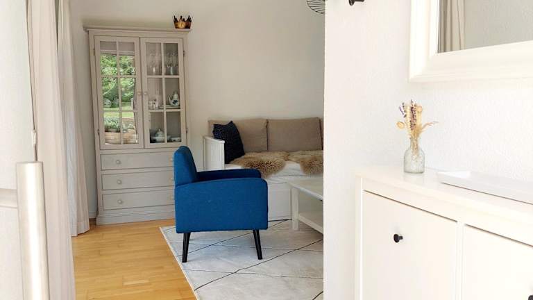 Die Ferienwohnung verfügt über ein Schlafzimmer und ein Wohnzimmer, das mit einem Flachbild-TV ausgestattet ist. Die gut ausgerüstete Küche bietet einen Kühlschrank und einen Geschirrspüler. Zur weiteren Ausstattung gehört ein Badezimmer mit Dusche. Handtücher und Bettwäsche werden bereitgestellt. Zudem sind Familienzimmer vorhanden.