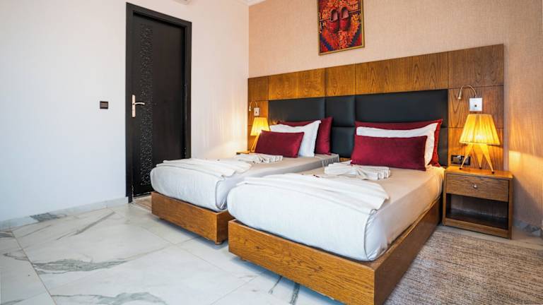 Die klimatisierten Zimmer im Ourika-Camp Marrakesch sind komfortabel und gemütlich eingerichtet. Jedes Zimmer verfügt über eine Terrasse, auf der Sie die frische Luft und die schöne Aussicht genießen können. Die Zimmer sind mit einem eigenen Bad mit WC und Dusche ausgestattet. Kostenloses WLAN ist in den öffentlichen Bereichen verfügbar.