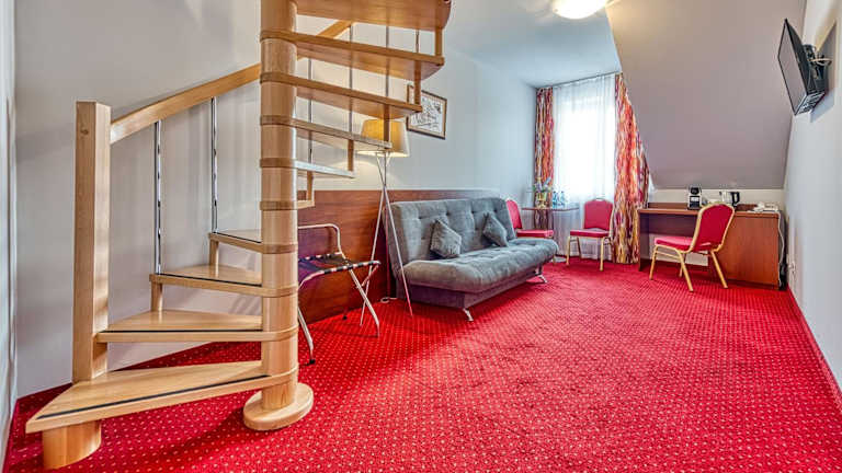 Jedes Zimmer ist mit einem Kleiderschrank, einem eigenen Badezimmer mit Dusche und Haartrockner sowie teilweise einem Sitzbereich ausgestattet. Darüber hinaus verfügen die Zimmer über einen Schreibtisch und einen Flachbild-TV.