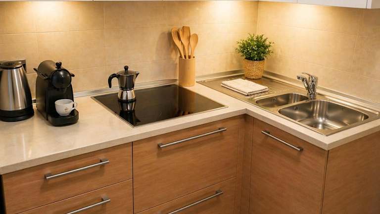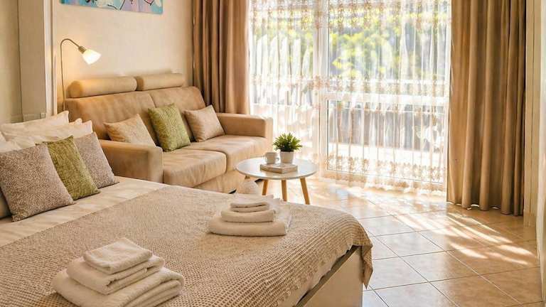 Die Ferienwohnung ist klimatisiert und umfasst Sitzgelegenheiten sowie eine Küche, die mit einem Kühlschrank ausgestattet ist. Ein Balkon bietet Gartenblick. Zur Ausstattung gehören zudem ein Satelliten-Flachbild-TV, Handtücher und Bettwäsche.