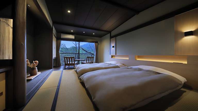 Die Zimmer im Oyado Morinone sind geräumig und bieten einen Balkon mit einem wunderschönen Blick auf den Garten. Jedes Zimmer ist mit Klimaanlage, einem Safe und einem Flachbild-TV ausgestattet. Hier können Sie sich nach einem langen Tag auf der Piste oder beim Erkunden der Umgebung entspannen und erholen.