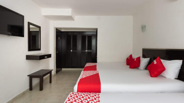 Die Zimmer im OYO Hotel Puesta del Sol sind komfortabel und bieten Annehmlichkeiten wie Klimaanlage, TV, eigenes Bad und kostenfreies WLAN. Ein Schreibtisch und ein Balkon mit Stadtblick sind ebenfalls vorhanden.