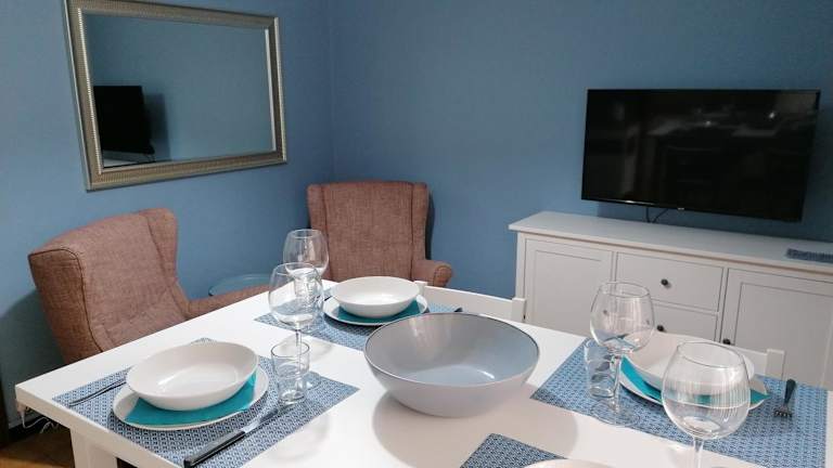 Die Ferienwohnung umfasst 2 Schlafzimmer und 1 Badezimmer, das mit einem Bidet, einer Dusche und einem Haartrockner ausgestattet ist. Des Weiteren verfügt die Unterkunft über einen Sitzbereich, einen Essbereich sowie eine vollständig ausgestattete Küchenzeile mit Geschirrspüler, Ofen und Herdplatte. Eine Terrasse ist ebenfalls vorhanden.