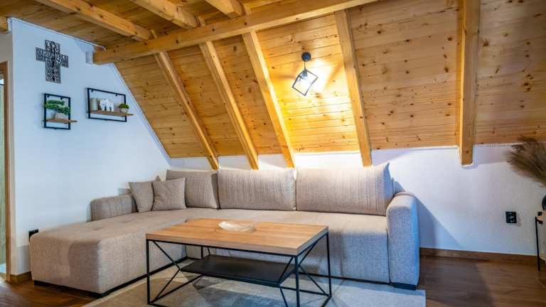 Das Ferienhaus bietet zwei Schlafzimmer, ein Wohnzimmer mit einem Flachbild-TV, eine gut ausgestattete Küche mit Kühlschrank und Ofen sowie ein Badezimmer mit Dusche.