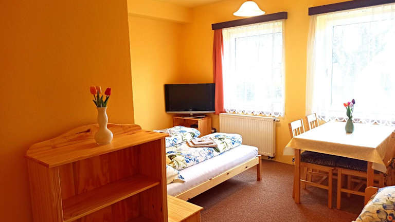 Das Jičín Penzion P&P bietet private 2-3-Bett-Zimmer mit einer eigenen Küche und einem Badezimmer. Es liegt in Jičín und ist der perfekte Ort für einen angenehmen Aufenthalt. Genießen Sie den schönen Gartenblick und das kostenlose WLAN in allen Bereichen. Die Unterkunft ist gut ausgestattet mit einem Flachbild-TV, einer Küche mit Kühlschrank, Mikrowelle und Kochfeld sowie einer Dusche mit kostenlosen Pflegeprodukten und einem Haartrockner. Der nächstgelegene Flughafen ist der Flughafen Pardubice, der etwa 75 km entfernt liegt.